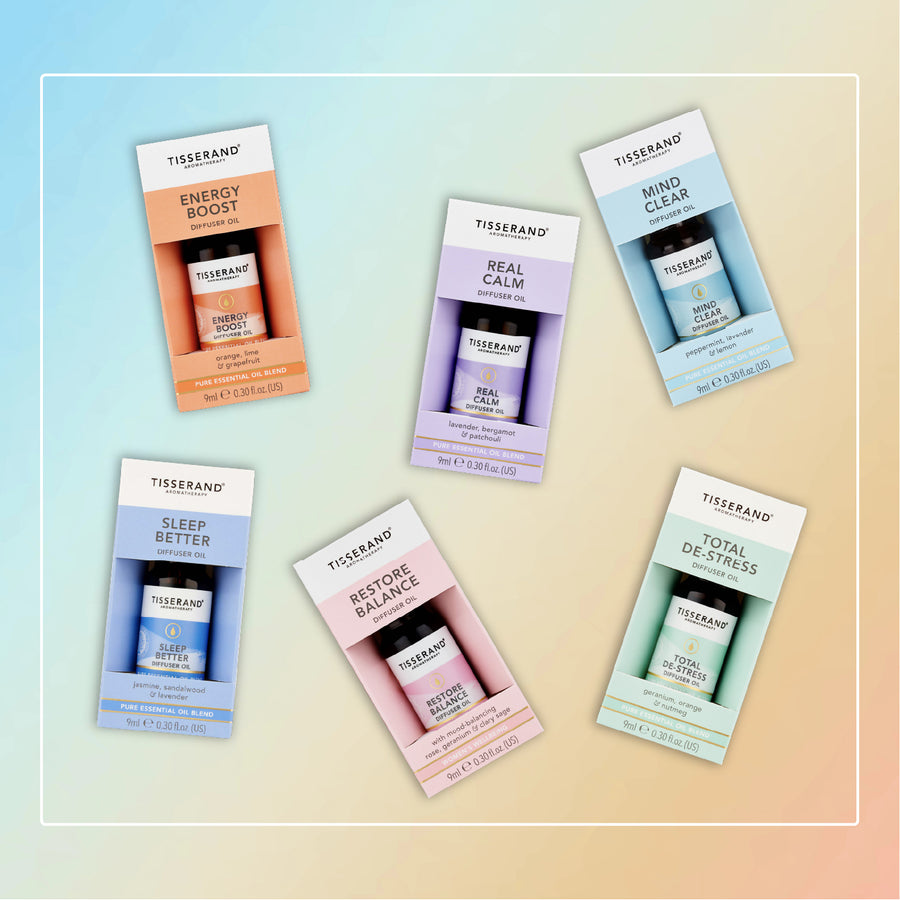 A selection of expert blends and single essential oils, providing natural ways to target key wellbeing needs, from sleep quality to stress relief and women's health.